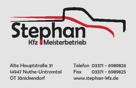 hat seit Dezember 2013 seinen Sitz in Jänickendorf, Alte Hauptstraße 31 Kfz- Meister Andreas Stephan führt, mit über 20-jähriger Berufserfahrung, seinen selbständigen Handwerksbetrieb mit Eintragung in der Handwerksrolle. Als freier Kfz-Meisterbetrieb führen wir sämtliche Reparaturen an Pkw und Transporter aller Fabrikate durch.